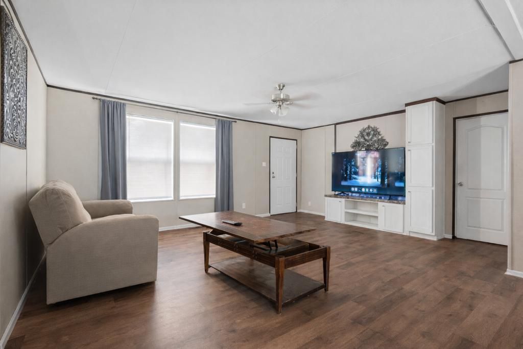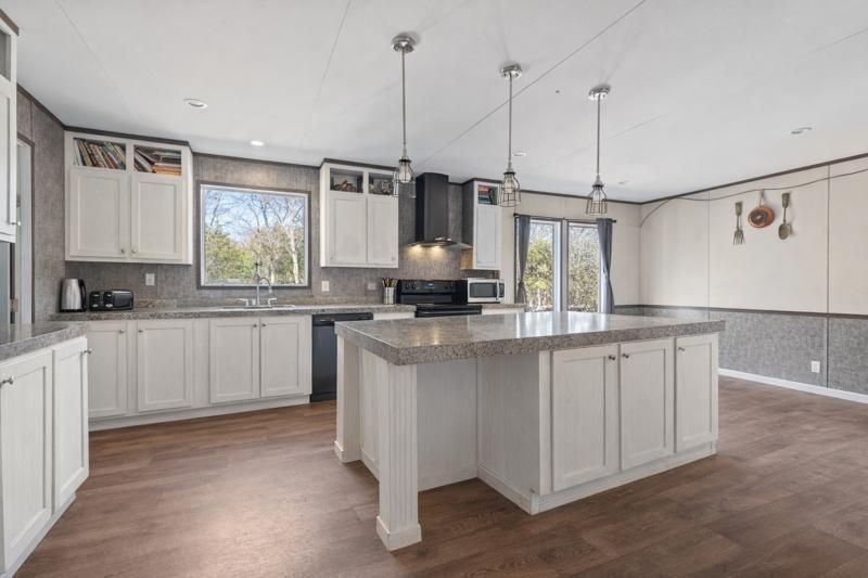 Spacious 3-bedroom, 2-bathroom manufactured home (2022 Champion Daytona) offering approximately 1,400 sq ft, situated on 6 beautiful acres. Property is partially fenced with a designated area ready for livestock. Inside, the home features an open layout with a large kitchen island, wood laminate flooring throughout the main living areas, and carpeted bedrooms for added comfort. One storage shed will remain with the property. Additional features include an extra 100-amp electrical hookup, providing added flexibility for future needs. Peaceful country setting with room to grow, work, or play.